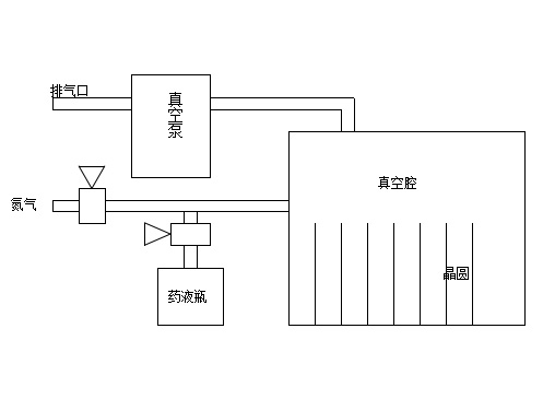 먼저, 진공 펌프를 켜서 진공 청소를 시작합니다. 챔버의 진공 수준이 설정 값(이 값은 진공 게이지의 P2 값을 변경하여 설정할 수 있음, 진공 게이지 설명서 참조)에 도달하면 질소가 도입됩니다. 설정된 진공 수준(이 값은 진공 게이지의 P1 값을 변경하여 설정할 수 있음)에 도달한 후 진공 청소 및 질소 도입 과정이 반복됩니다. 설정된 질소 투입 횟수에 도달한 후 다시 진공 청소를 시작하고 이어서 약액을 투입합니다. 설정된 시간이 지나면 약액 투입이 중단되고 유지 단계가 시작됩니다. 설정된 유지 시간이 지나면 설정된 사이클 수 동안 진공 청소 및 질소 도입이 다시 시작됩니다. 시스템이 자동으로 프로세스를 완료하면 웨이퍼 제거 준비가 완료되었음을 알리는 시청각 경보가 제공됩니다.